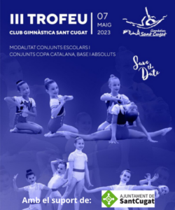 Ja el tornem a tenir aqu! El prxim diumenge, 7 de maig, de 9.30 a 18.30 hores (en 5 torns), al Pavell 3 de la ZEM Rambla del Celler, el club organitzar el 3r Trofeu Club Gimnstica Rtmica i Esttica Sant Cugat. Hi prendran part 450 gimnastes (65 conjunts i 25 individuals) de 13 clubs catalans, que ens oferiran un total de 130 actuacions, en les modalitats de conjunts i individuals. El campionat comptar amb la presncia de l’exgimnasta internacional Natalia Garcia.